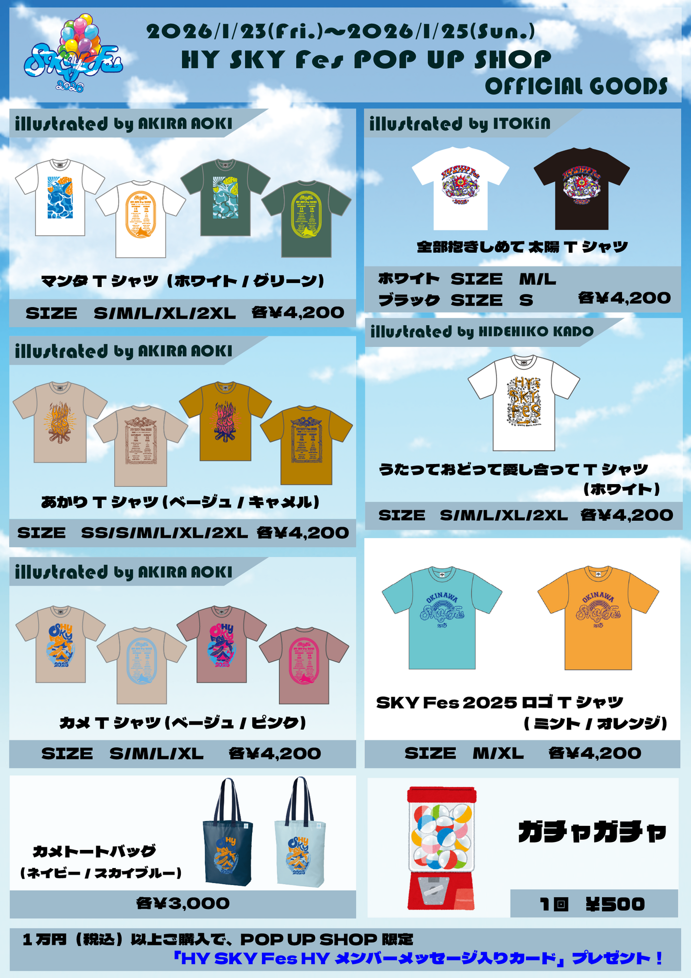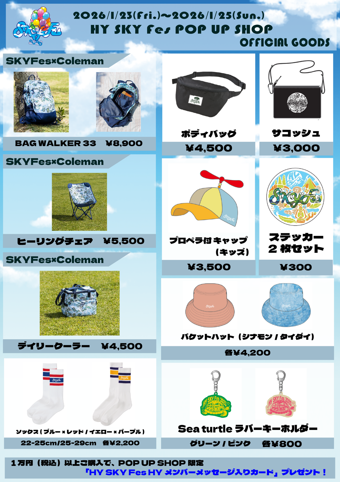 POP UP SHOPでHY SKY Fes2026&Special Nightの入場チケットまたは、オフィシャルグッズを1万円(税込)以上ご購入いただいた方に、