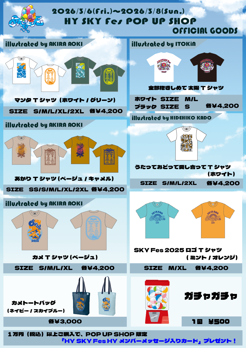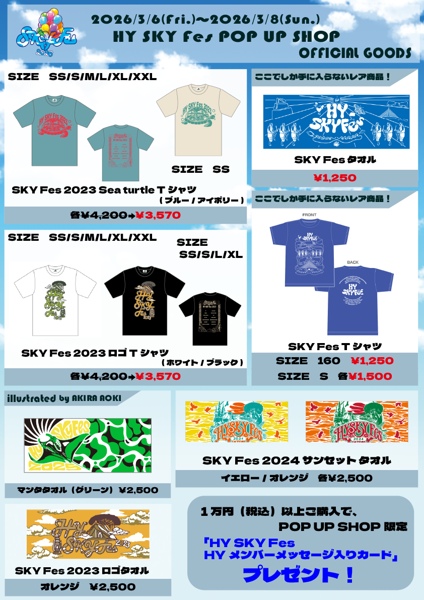 POP UP SHOPでHY SKY Fes2026&Special Nightの入場チケットまたは、オフィシャルグッズを1万円(税込)以上ご購入いただいた方に、