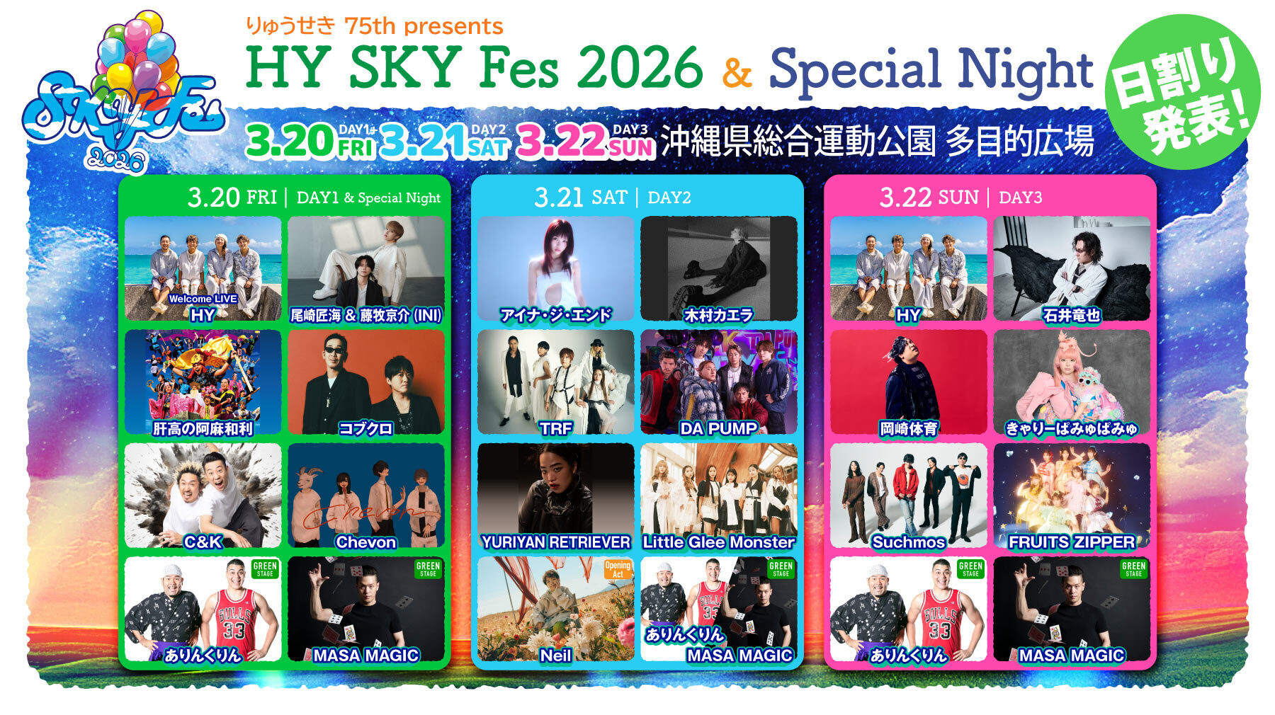2025.10.25 NEWS 「HY SKY Fes 2026&Special Night」最終出演アーティスト&日割り解禁! ツイート シェア アーティストプロフィール チケットオフィシャル先行販売はこちらから